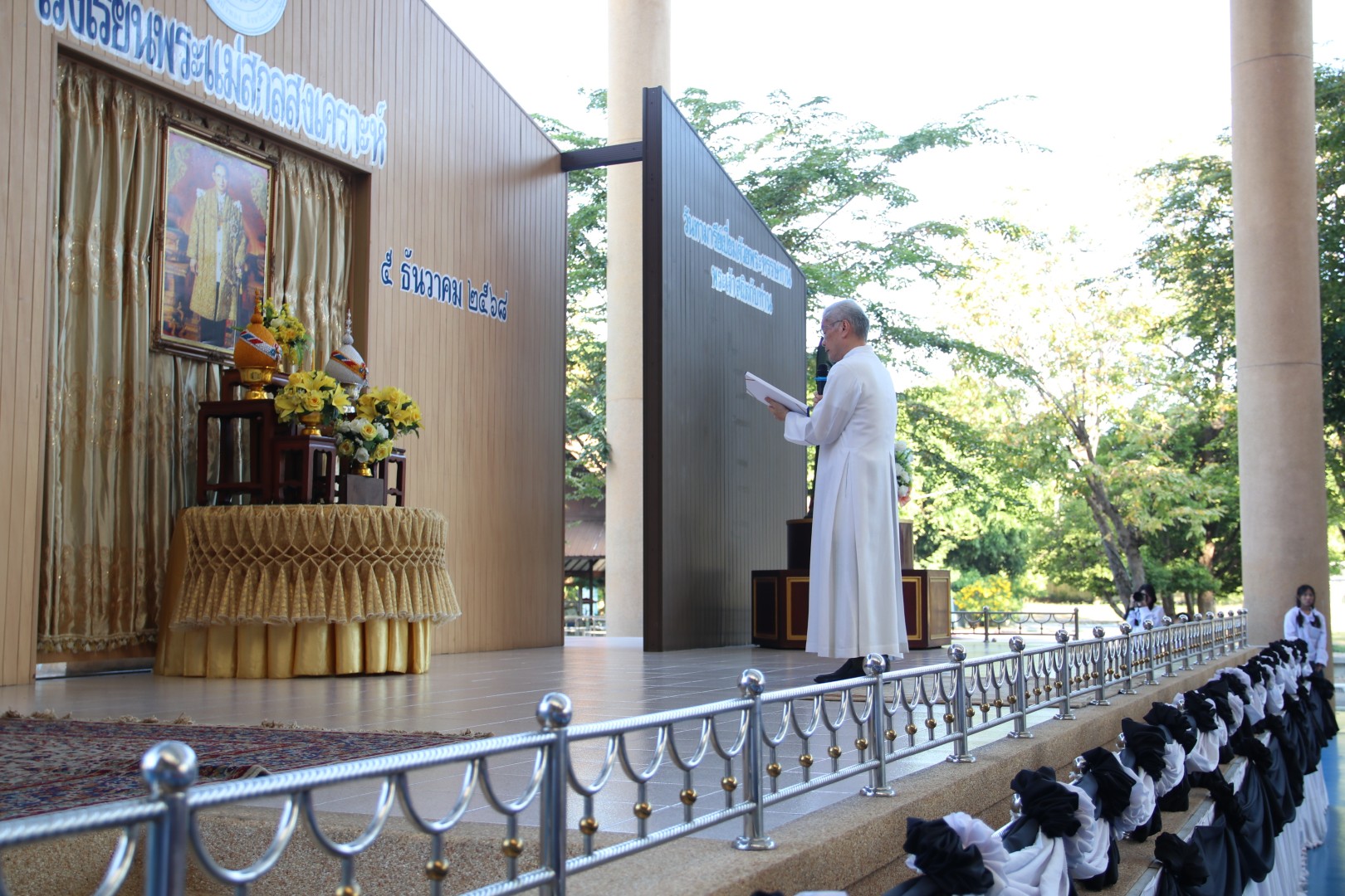 –คณะผู้บริหาร ครู และนักเรียน ร่วมกันนั่งสมาธิเพื่อถวายเป็นพระราชกุศล